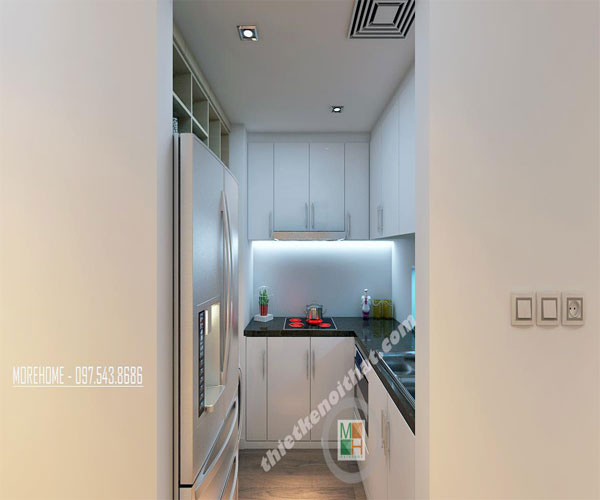 - Tủ bếp chữ I: thích hợp cho nhiều không gian căn bếp, từ căn hộ nhỏ đến không gian vừa và rộng.