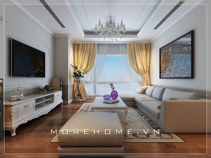 Thiết kế nội thất phòng khách chung cư hiện đại kết hợp cách bài trí đồ đạc khoa học, ngôi nhà vẫn thật rộng rãi, sáng sủa và thoáng đãng.