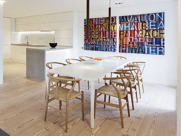 Mẫu bàn ăn gỗ nguyên khối với thiết kế 8 ghế gỗ hiện đại cho phòng ăn chung cư