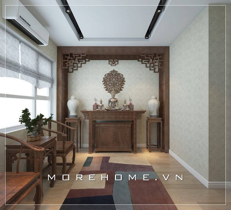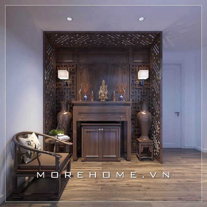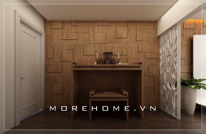 Mẫu bàn thờ gỗ gỗ sồi cho phòng khách chung cư