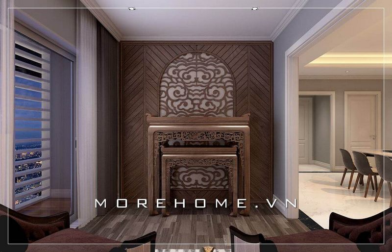 Mẫu bàn thờ gia tiên phù hợp với nhiều không gian phòng khách chung cư, biệt thự, nhà phố