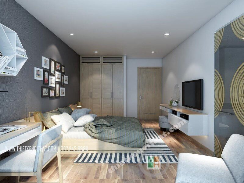 Gợi ý thiết kế phòng ngủ đơn giản với nội thất cơ bản bằng gỗ công nghiệp phong cách hiện đại