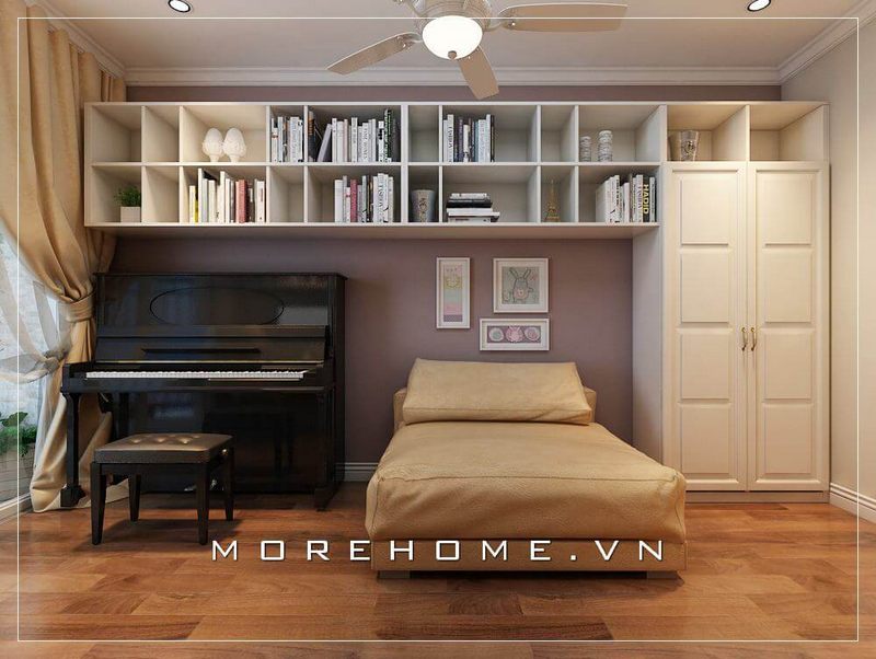 Một chiếc giường sofa khung gỗ là sự lựa chọn phù hợp nhất cho căn phòng ngủ hiện đại này. Màu sắc chiếc giường trang nhã kết hợp giữa màu trắng và be rất hài hòa tôn lên vẻ trẻ trung và hiện đại cho ăn phòng ngủ.
