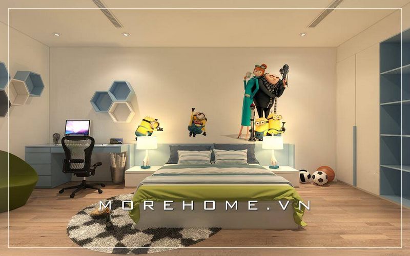 Thiết kế giường ngủ trẻ em hiện đại kết hợp 2 tab liền tiện dụng