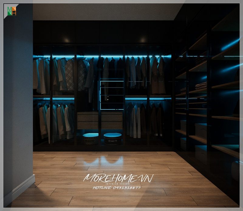 Để cho không gian phòng thay đồ thêm phần ấn tượng, đèn trang trí sao cho phù hợp góp phần quan trọng đến vẻ đẹp của không gian phòng thay đồ