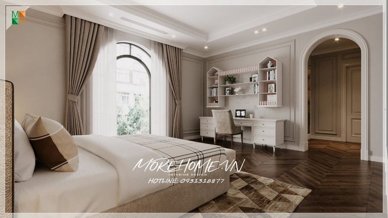 Thi công phòng ngủ nội thất được sắp xếp phù hợp ngăn nắp mang lại tính năng sử dụng và thẩm mỹ cao