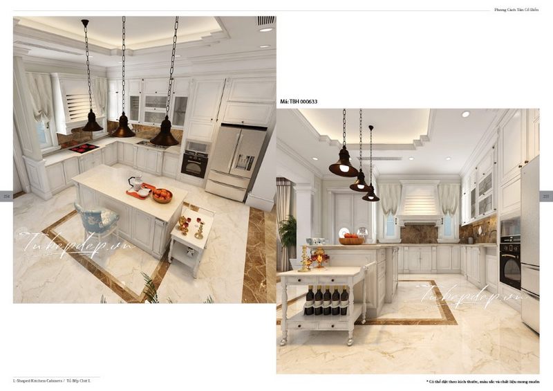 Phòng bếp trên đây có sức cuốn hút do sắc trắng kết hợp với phong cách thiết kế tân cổ điển hoàng gia, nên bạn nên tham khảo cách bố trí này để làm cho ngôi nhà của mình trở nên đẹp hơn.