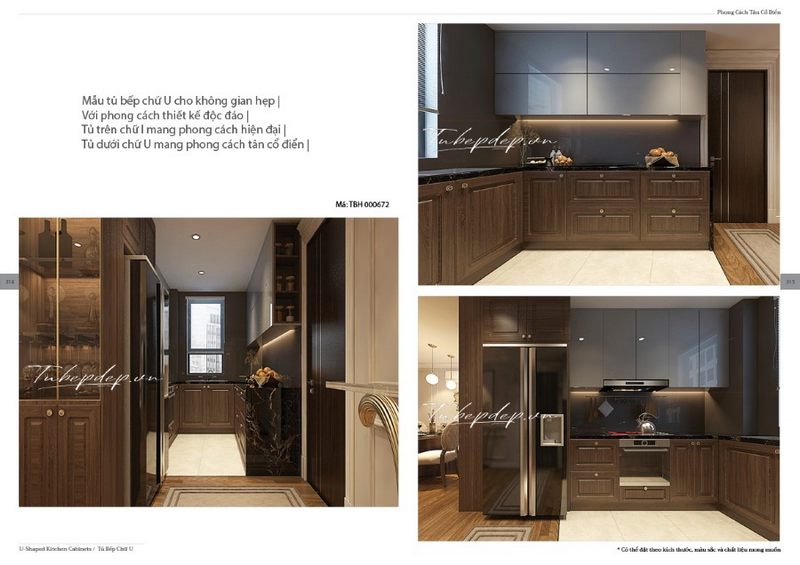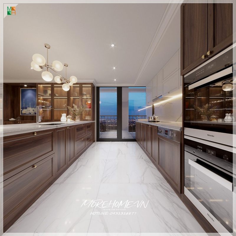 Bên cạnh đó, sự kết hợp giữa đường nét cổ điển và hiện đại cũng được nhiều người yêu thích. Những chiếc tủ với các chi tiết chạm khắc tinh xảo kết hợp cùng mặt đá marble sáng bóng tạo nên một bộ đôi hoàn hảo giữa vẻ đẹp nghệ thuật và công năng sử dụng. Không chỉ dừng lại ở màu sắc truyền thống như trắng hay nâu gỗ, năm nay còn chứng kiến sự lên ngôi của các màu sắc táo bạo như xanh navy hoặc đỏ burgundy, giúp không gian nhà bếp trở nên sinh động và thu hút ánh nhìn ngay từ lần đầu tiên bước vào.