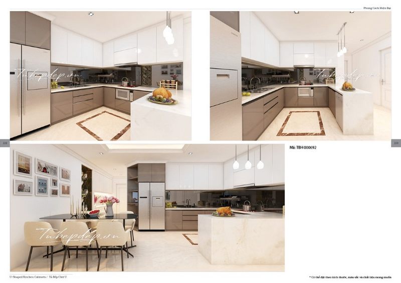 Một trong những điều thú vị nhất khi thiết kế tủ bếp là khả năng thể hiện cá tính qua các kiểu dáng độc đáo. Năm nay, xu hướng tủ bếp hình chữ L, chữ U hay thậm chí là hình tròn đang trở nên phổ biến hơn bao giờ hết. Kiểu tủ bếp chữ L không chỉ tối ưu hóa không gian mà còn tạo nên sự gần gũi và ấm cúng cho gia đình. Ngược lại, mẫu chữ U mang đến cảm giác sang trọng và đầy đủ tiện nghi hơn, phù hợp với những căn bếp rộng rãi.
