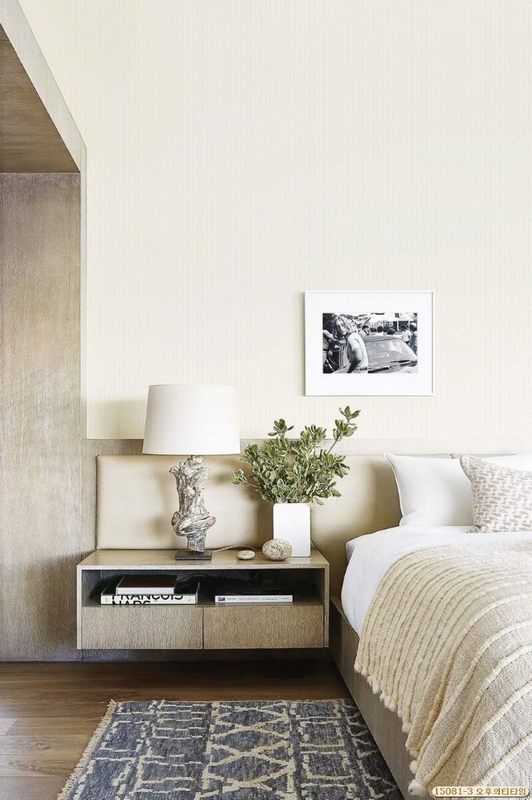Không gian phòng ngủ trở nên rộng rãi, thoáng mát hơn với giấy dán tường mang sắc trắng như thế này